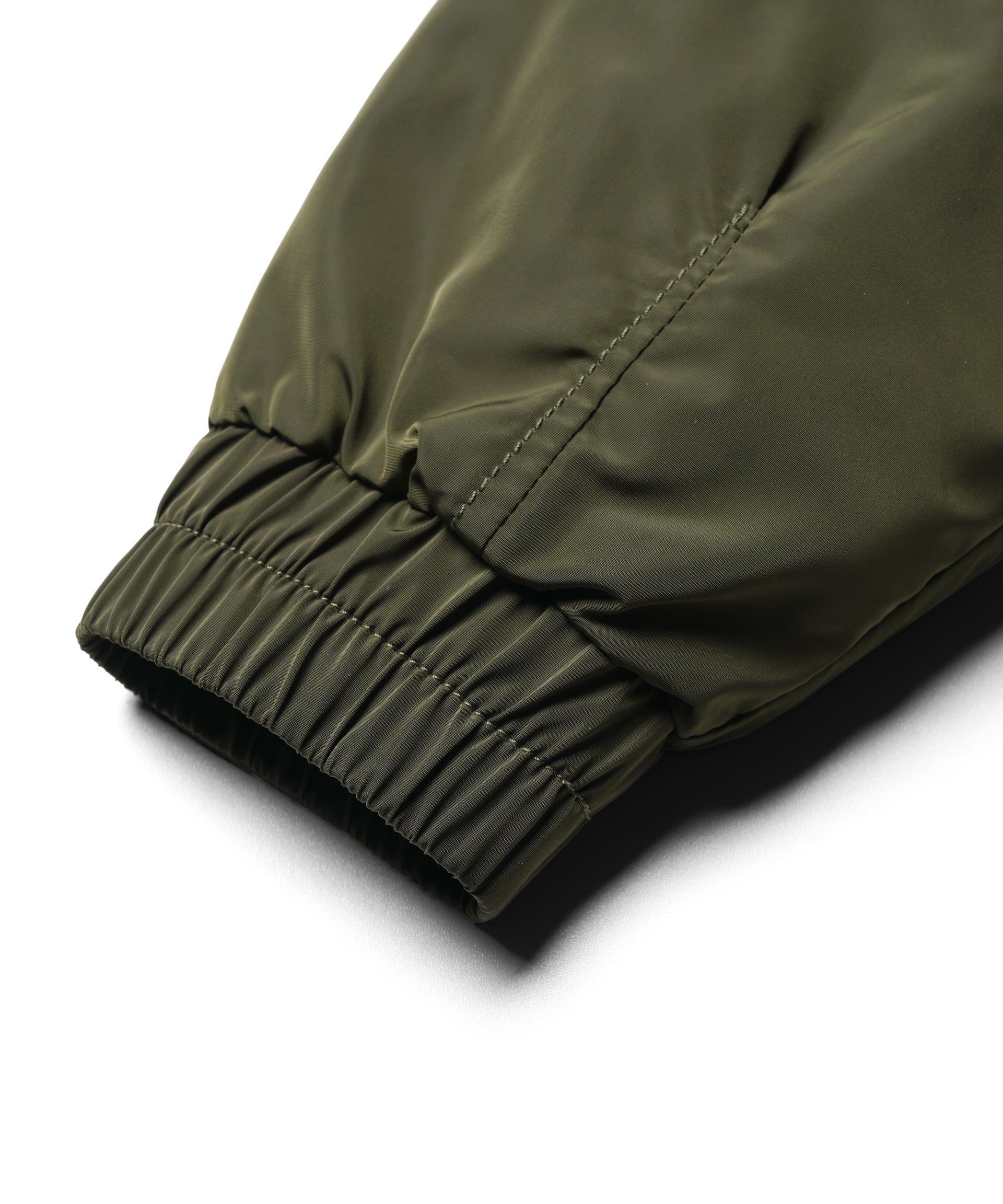 Main Label Woven / Size Label Woven / Hanger Looper / Screen Printed Graphic / YKK Zipper Antique Brass with Prusik Cord / Side Pocket wirh Safety Snap Button Antique Brass / Elastic Waistband / Elastic Cuff / Inner Poly Quilted with Dacron